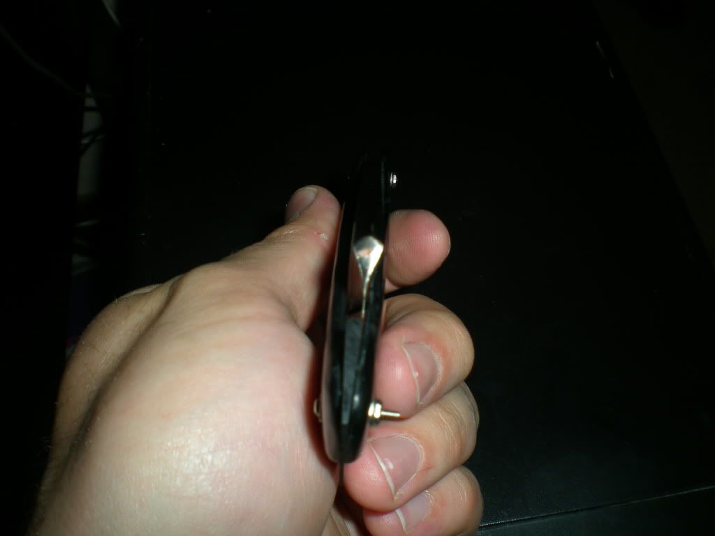 So I am working on making my first set of scales. I'm making them out of kydex since I have a ton of 1/8" kydex that I have no use for and its waterproof so why not? I'm putting them on the blade I had to regrind because of the crack (the one from Laura's parent's house). Anyway, after burning through a foot of brass rod with unsuccessfull peining I decided to go with the stainless steel fasteners I have. Anyway, long story short, I can't get the blade to center for the life of me! Quite frustrated right now. Oh well. Off to study and do some handsanding. Wish me luck.